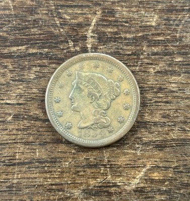 The 1854 1C BN Braided Hair Large Cent is a classic piece of American currency from the mid-19th century. This copper coin features a portrait of Lady Liberty with braided hair on the obverse, and the denomination and mint location on the reverse. It is a business strike made in Philadelphia, Pennsylvania, and is uncertified. A circulated piece with a brown color, this coin is a valuable addition to any coin collection for its historical and numismatic significance.