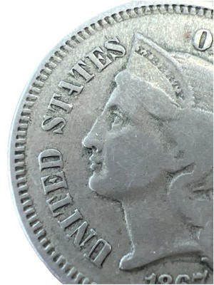 The 1867 3 Cent Nickel Piece A1364 is a coin minted in Philadelphia in the United States. It is composed of nickel and has a denomination of 3 cents. This circulated coin is a business strike, meaning it was produced for general circulation rather than as a collectible. Although it is uncertified, it holds historical value as a piece of US coinage from the late 19th century.