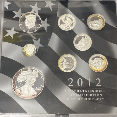 The 2012-S US Mint Limited Edition Silver Proof 8 Coin Set includes a variety of denominations such as 10 cents, 25 cents, 50 cents, and $1, all made of silver with a fineness of 0.9 & 0.999. These uncirculated coins are struck in proof finish at the San Francisco Mint and certified by the U.S. Mint. The set also includes the 2012-W American Eagle with its original government packaging. This limited edition set is a valuable addition to any coin collection.