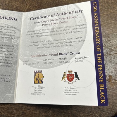 The 2015 Isle of Man 175th Anniversary Pearl Unique Black Crown Coin by Pobjoy Mint is a special commemorative coin celebrating a significant anniversary. Made of copper-nickel, this crown-sized coin was minted in the United Kingdom in 2015. The unique design and certification make it a valuable addition to any coin collection, showcasing the craftsmanship and history of the Isle of Man.