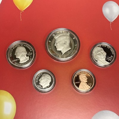 The 2021-S Happy Birthday Coin Set is a special proof set of 5 coins, each composed of CN-Clad and struck in proof quality by the U.S. Mint in San Francisco. Denominations include 1c, 5c, 10c, 25c, and 50c, all in freshly minted condition with a Gem DCam grade. These collectible coins are ideal for those looking to add unique and high-quality pieces to their coin collection, celebrating a special occasion like a birthday.