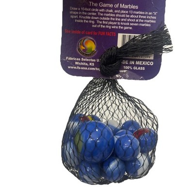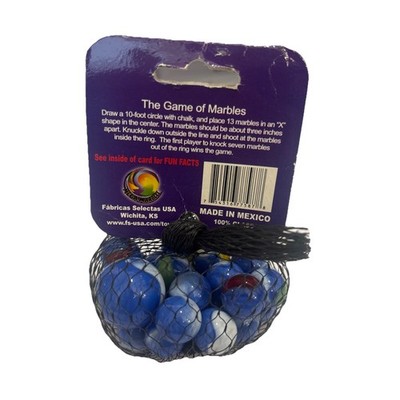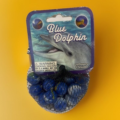 The Blue Dolphin Mega Marbles Net Bag set is a retired collectible from the years 2004-2006. This set includes 24 players and 1 shooter, all made of glass by the brand Mega Marble. The vibrant blue color and dolphin theme make this set a desirable choice for marble enthusiasts and collectors alike. Perfect for playing games or displaying as a unique addition to any toy or marble collection.