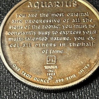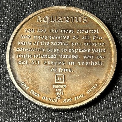 The Vintage Aquarius High Relief Zodiac Rare Coin is a unique and rare silver round featuring a high relief design of the Aquarius zodiac sign. This 1 Troy Ounce .999 fine silver coin is a collector's item, showcasing intricate details and craftsmanship. Made in the United States, this piece holds both intrinsic and extrinsic value, making it a desirable addition to any collection of rare coins and bullion.